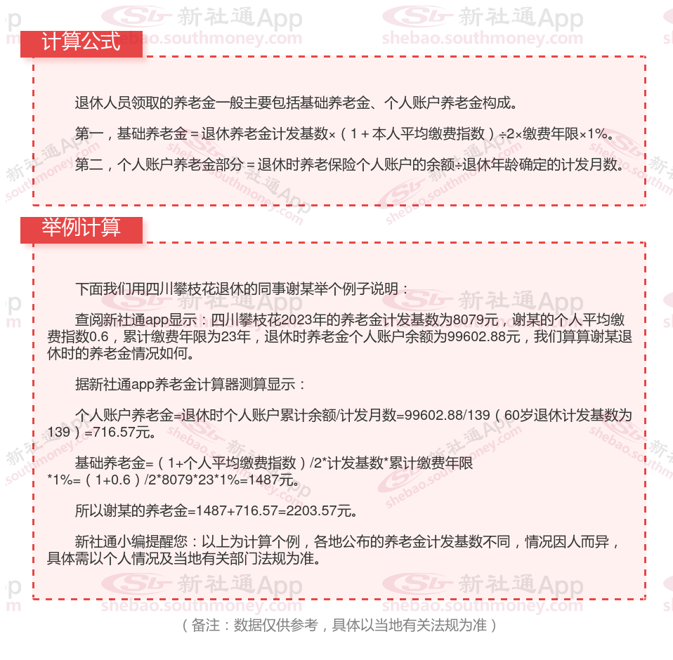 四川攀枝花退休工资养老金计算方法及公式2024年最新(举例说明)