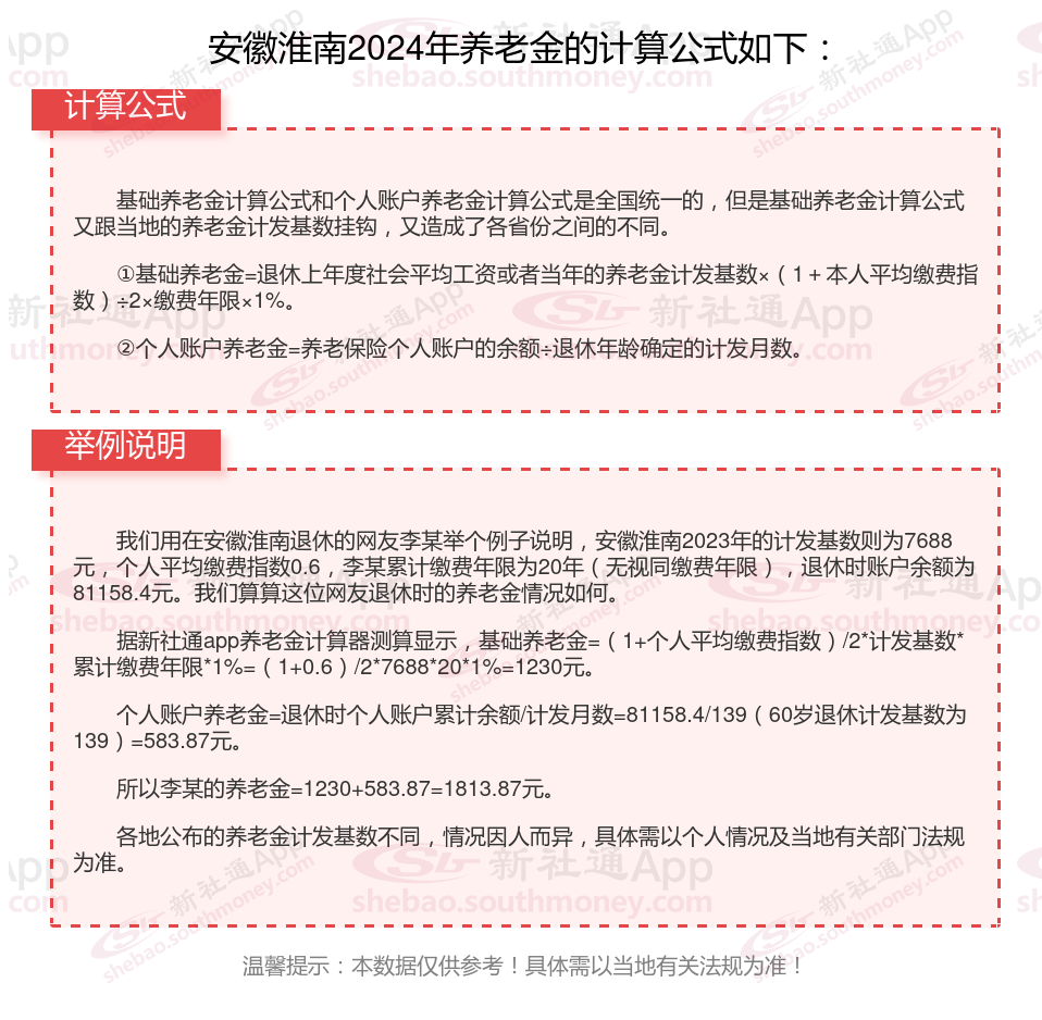 安徽淮南退休工资养老金计算方法及公式2024年最新(举例说明)