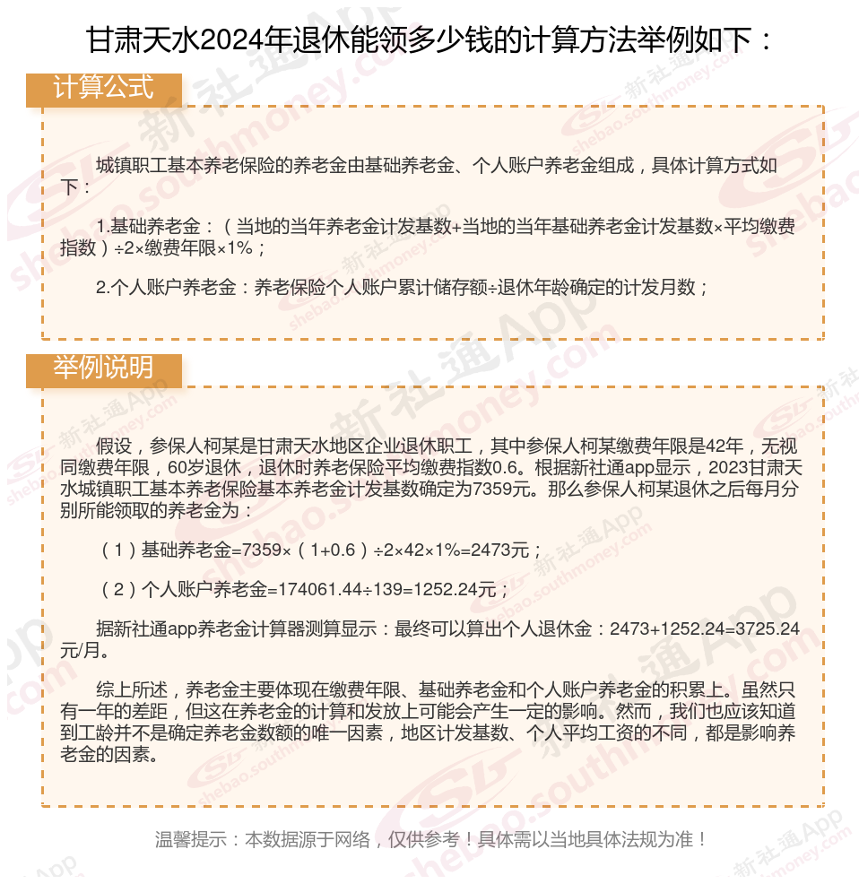 甘肃天水退休工资养老金计算方法及公式2024年最新(举例说明)