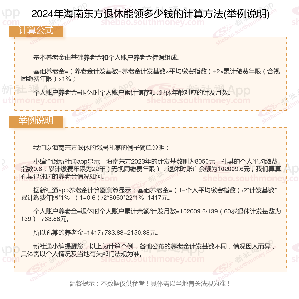 海南东方退休工资养老金计算方法及公式2024年最新(举例说明)