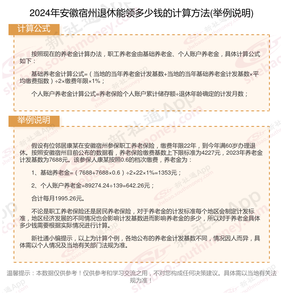 安徽宿州退休工资养老金计算方法及公式2024年最新(举例说明)