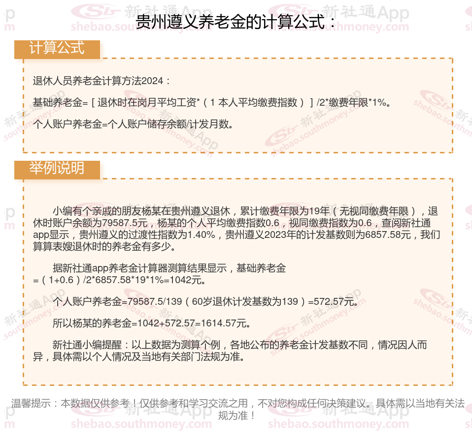 贵州遵义退休工资养老金计算方法及公式2024年最新(举例说明)