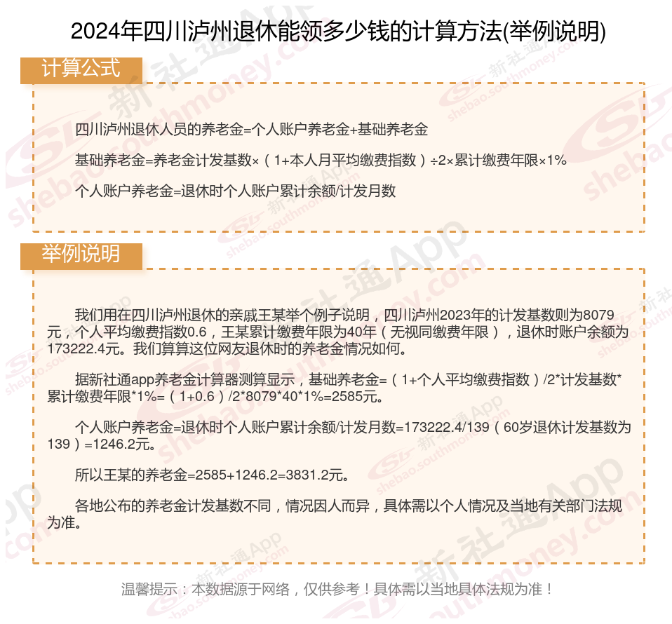 四川泸州退休工资养老金计算方法及公式2024年最新(举例说明)