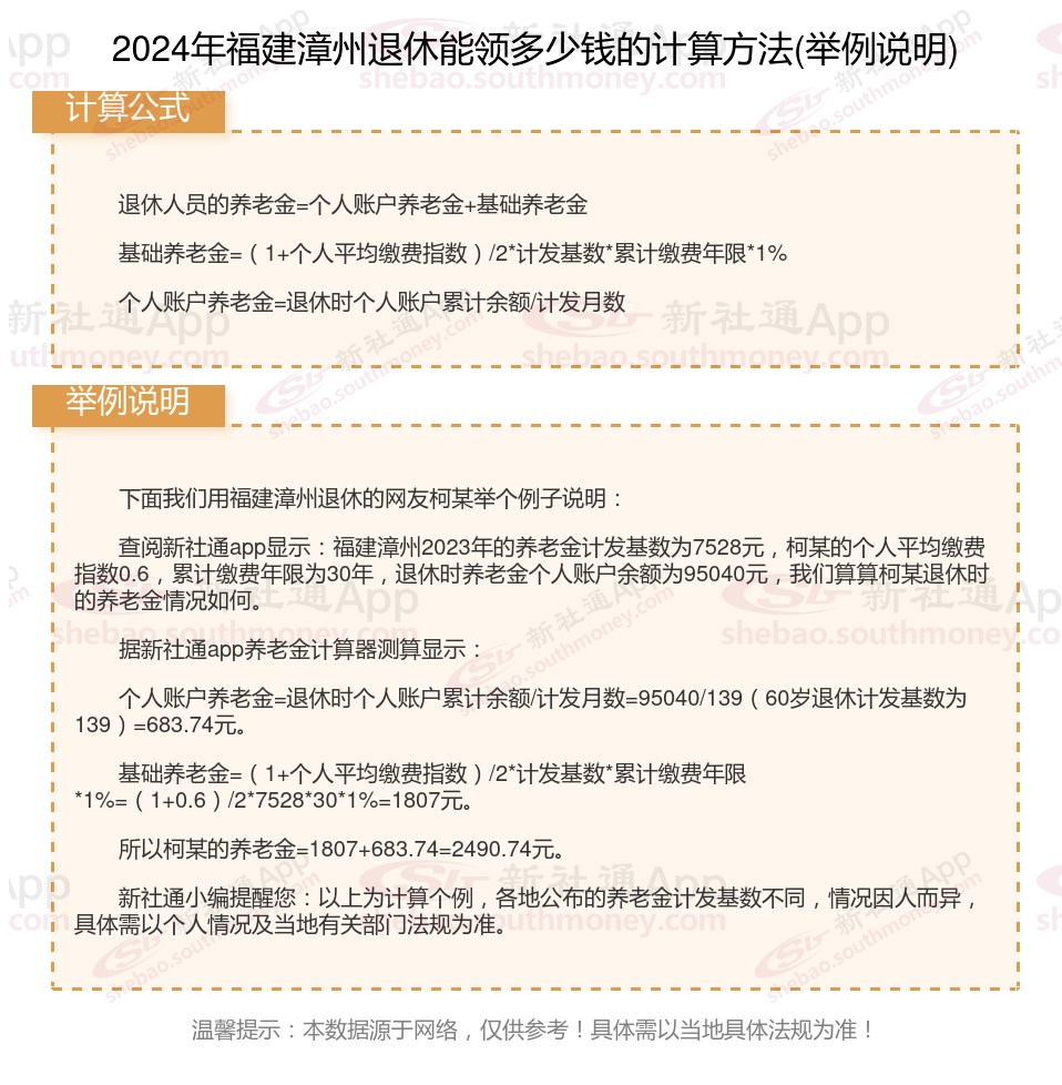 福建漳州退休工资养老金计算方法及公式2024年最新(举例说明)