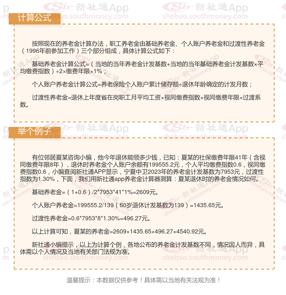 宁夏中卫退休工资养老金计算方法及公式2024年最新(举例说明)