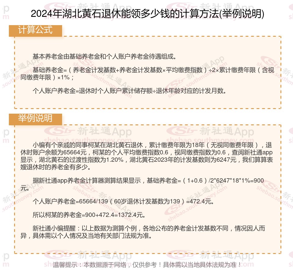 湖北黄石退休工资养老金计算方法及公式2024年最新(举例说明)
