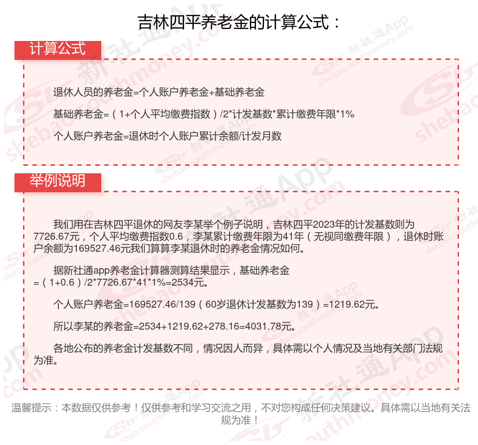 吉林四平退休工资养老金计算方法及公式2024年最新(举例说明)