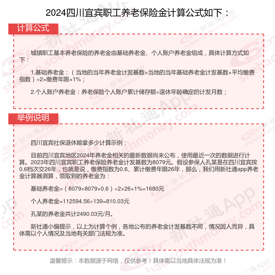 四川宜宾退休工资养老金计算方法及公式2024年最新(举例说明)