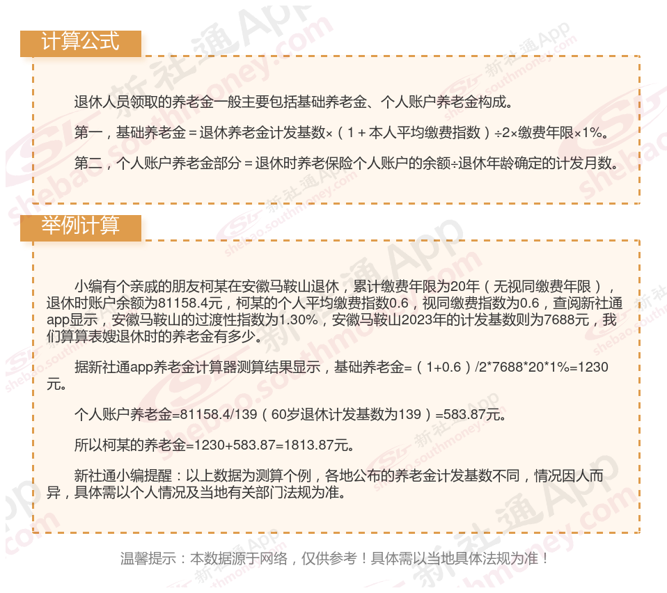 安徽马鞍山退休工资养老金计算方法及公式2024年最新(举例说明)