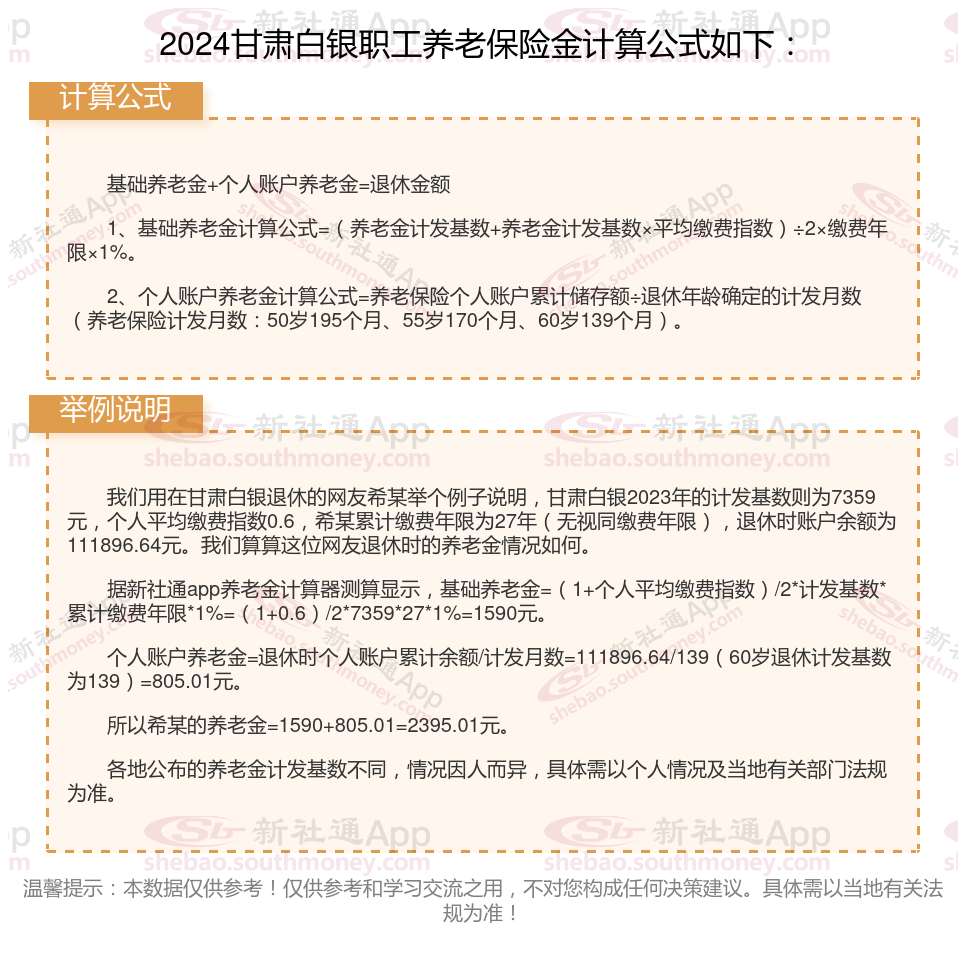 甘肃白银退休工资养老金计算方法及公式2024年最新(举例说明)