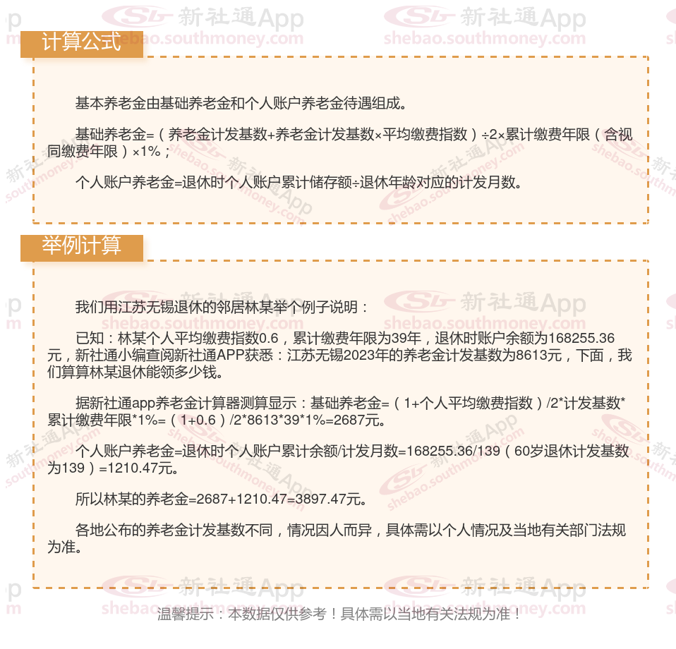 江苏无锡退休工资养老金计算方法及公式2024年最新(举例说明)