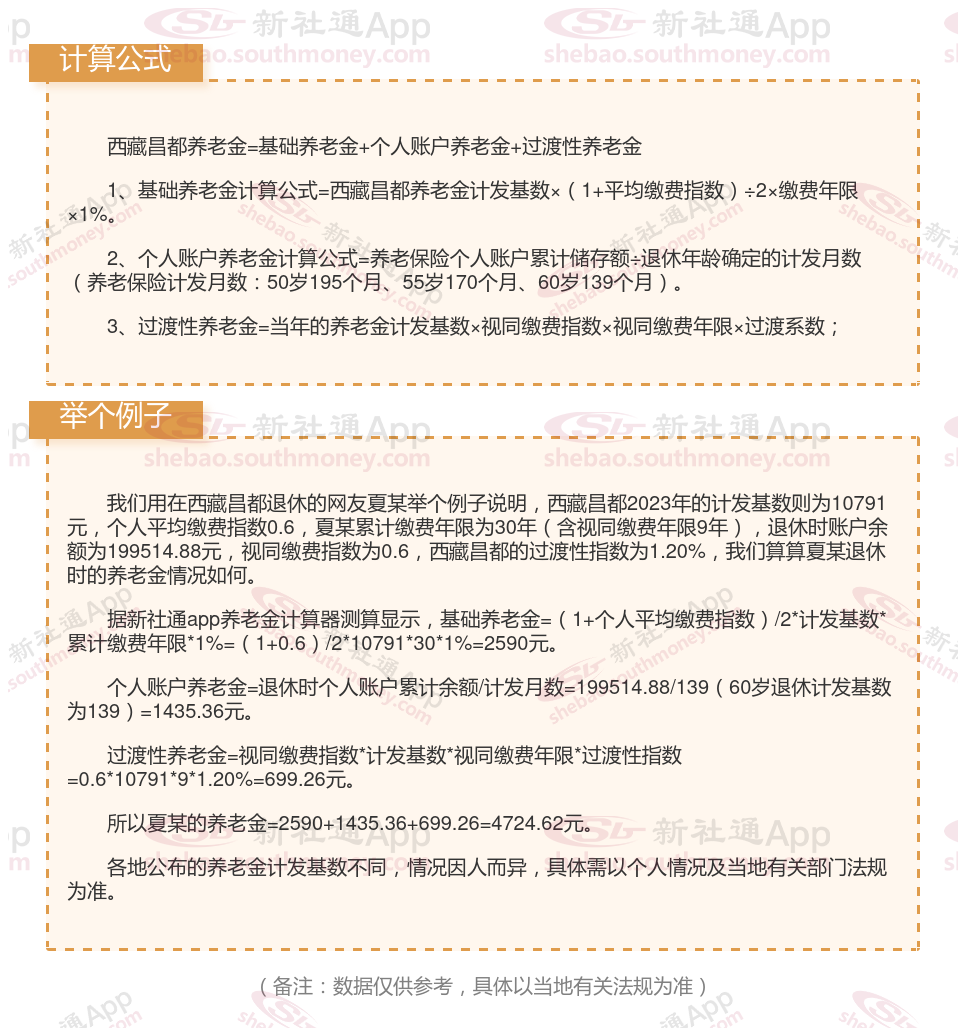 西藏昌都退休工资养老金计算方法及公式2024年最新(举例说明)