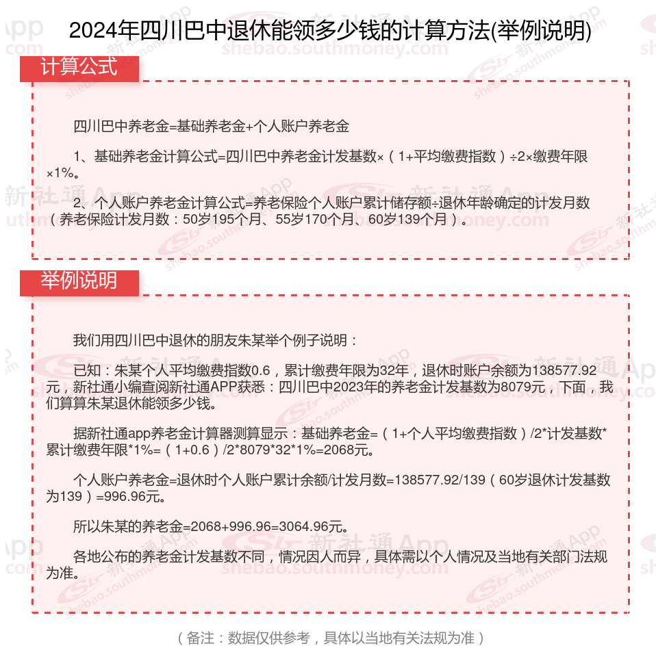 四川巴中退休工资养老金计算方法及公式2024年最新(举例说明)