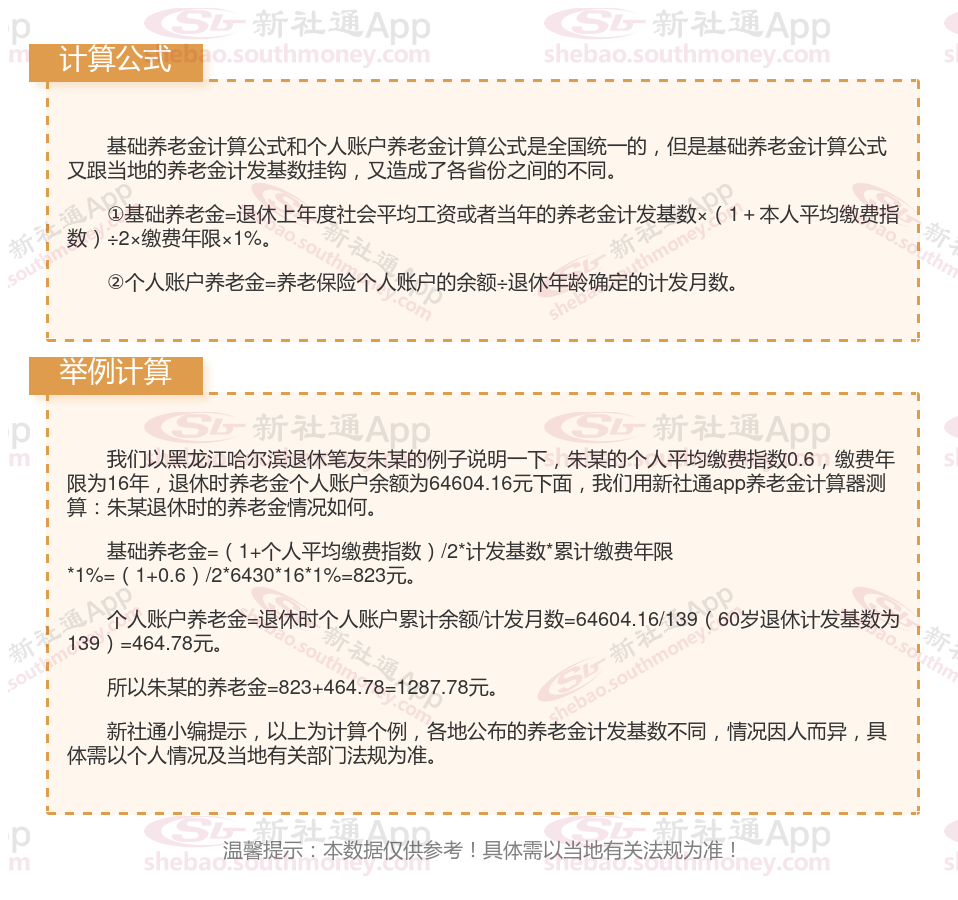 黑龙江哈尔滨退休工资养老金计算方法及公式2024年最新(举例说明)