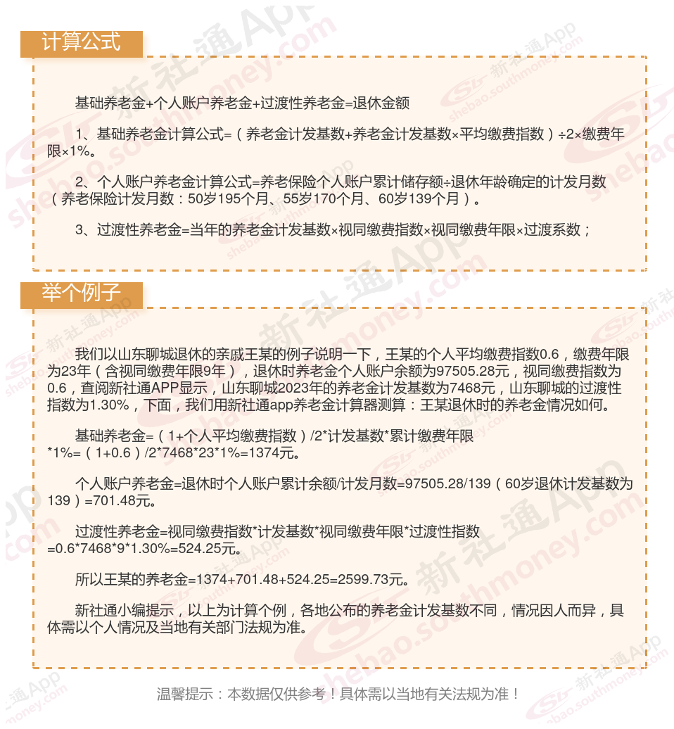 山东聊城退休工资养老金计算方法及公式2024年最新(举例说明)