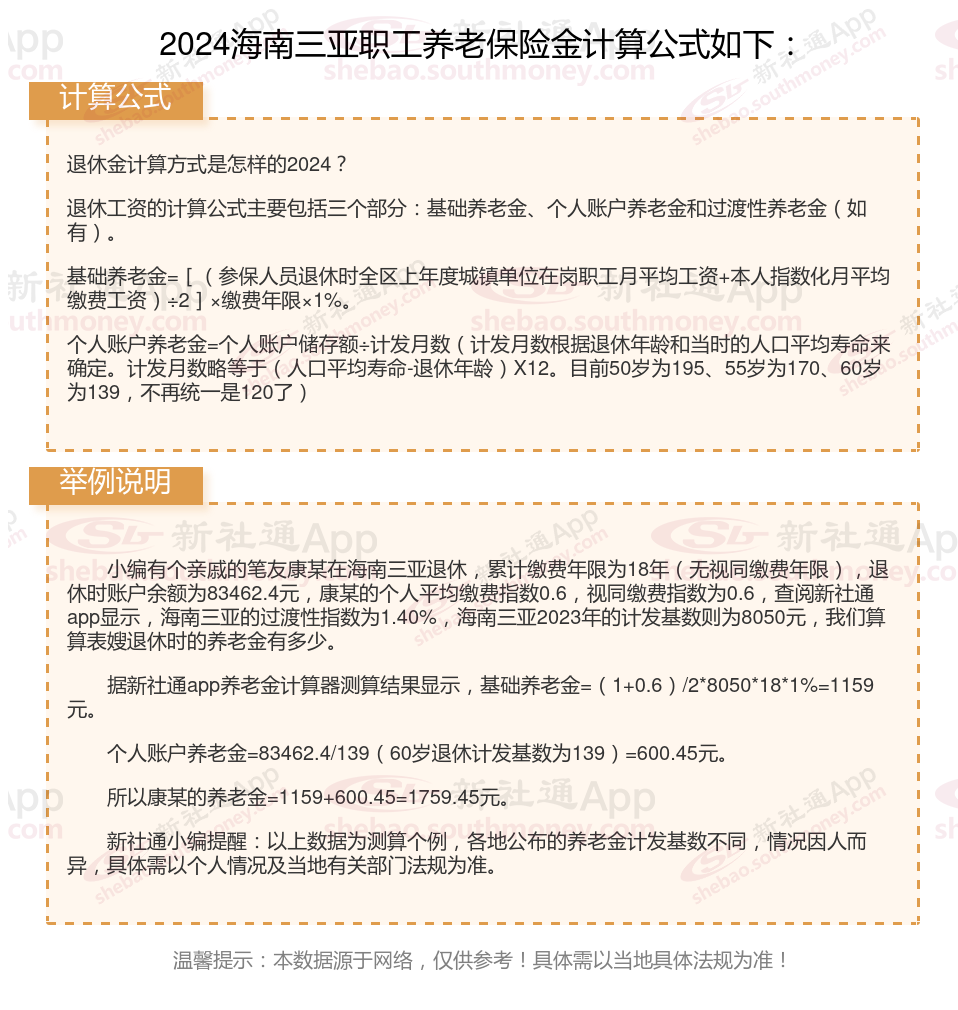 海南三亚退休工资养老金计算方法及公式2024年最新(举例说明)