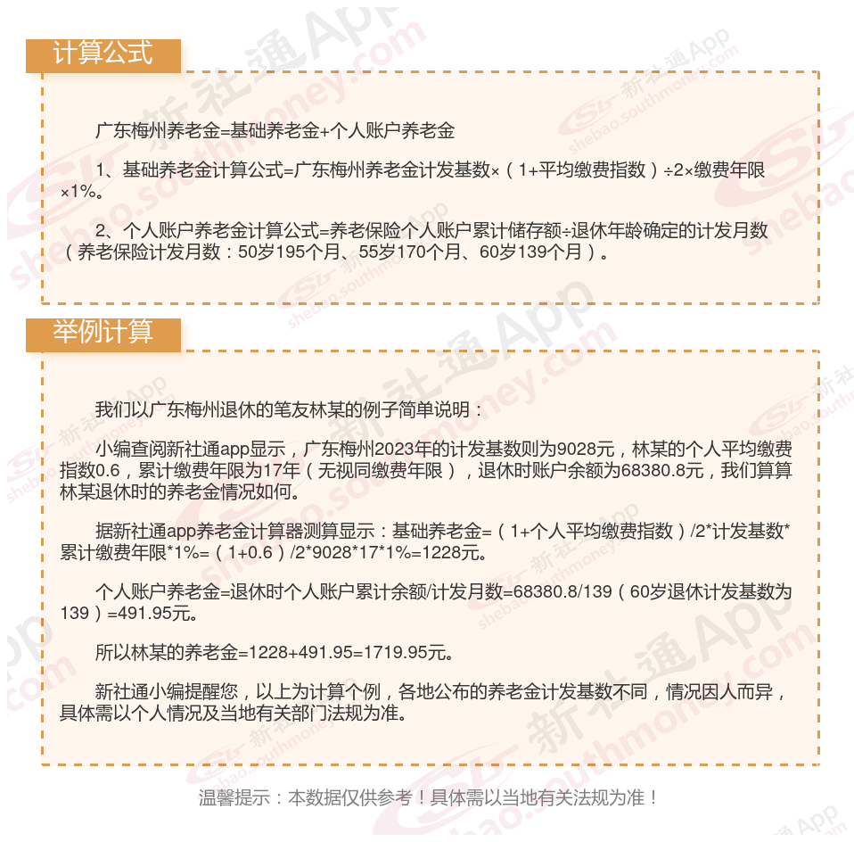 广东梅州退休工资养老金计算方法及公式2024年最新(举例说明)