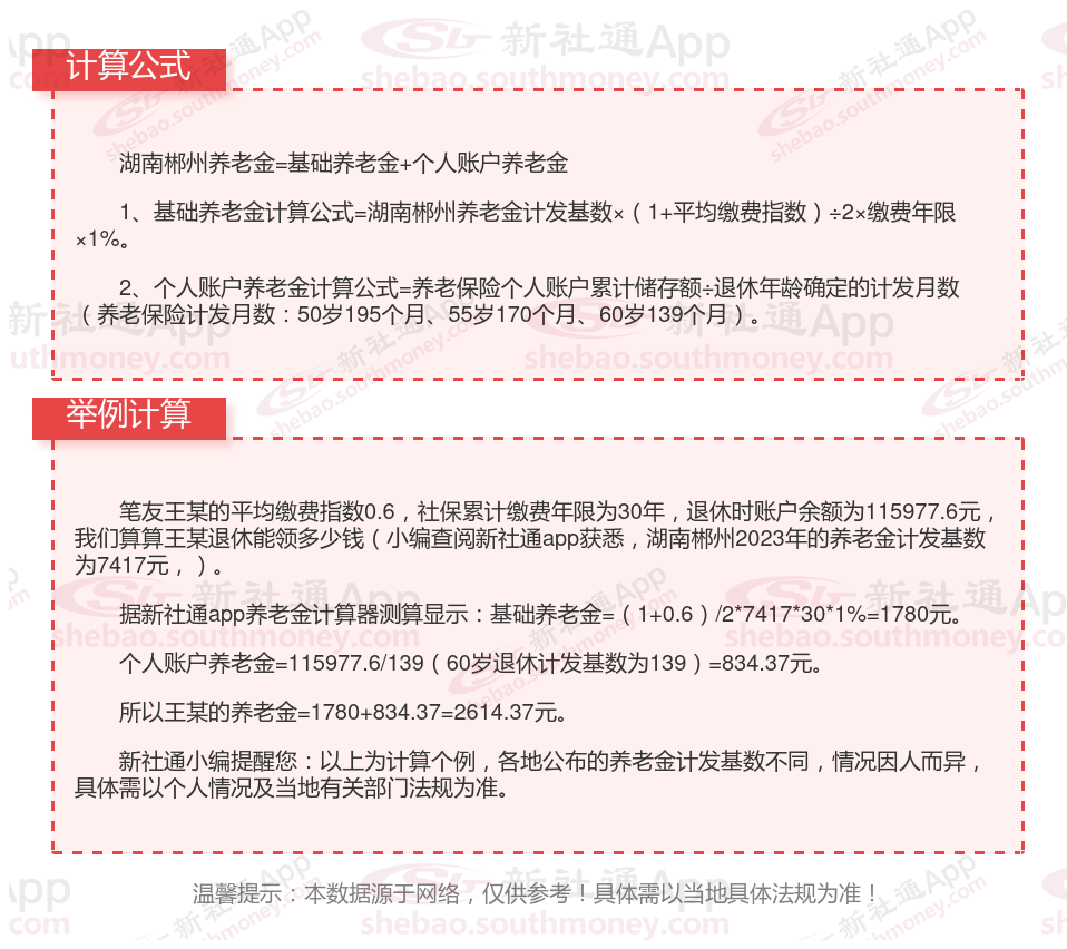 湖南郴州退休工资养老金计算方法及公式2024年最新(举例说明)