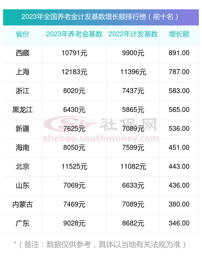 2023年最新养老金计发基数增长额排行榜前几位的情况如何呢?