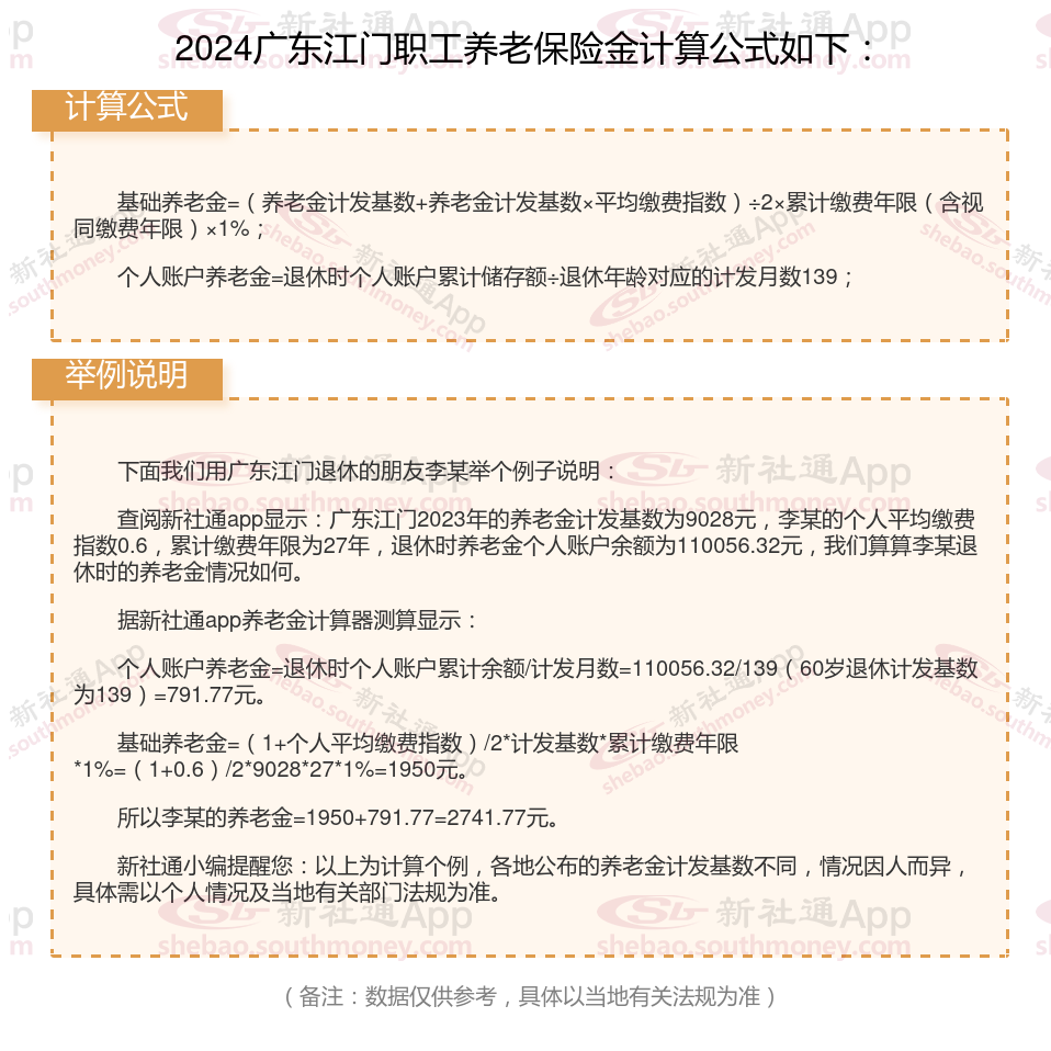 广东江门退休工资养老金计算方法及公式2024年最新(举例说明)