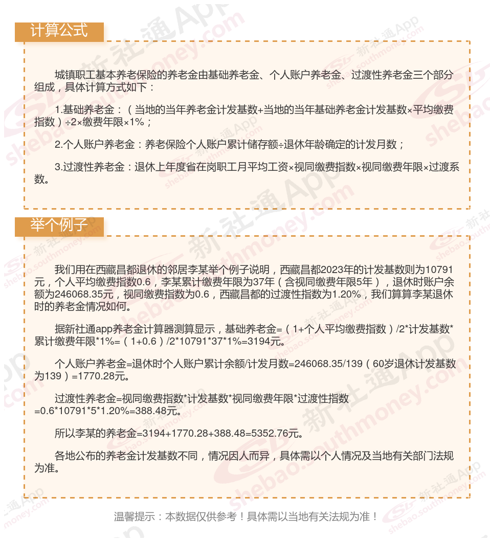 西藏昌都退休工资养老金计算方法及公式2024年最新(举例说明)