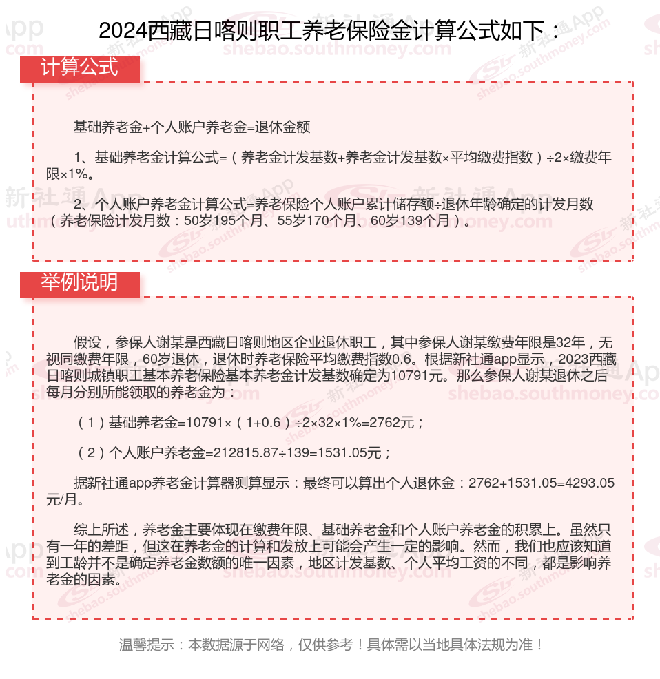 西藏日喀则退休工资养老金计算方法及公式2024年最新(举例说明)