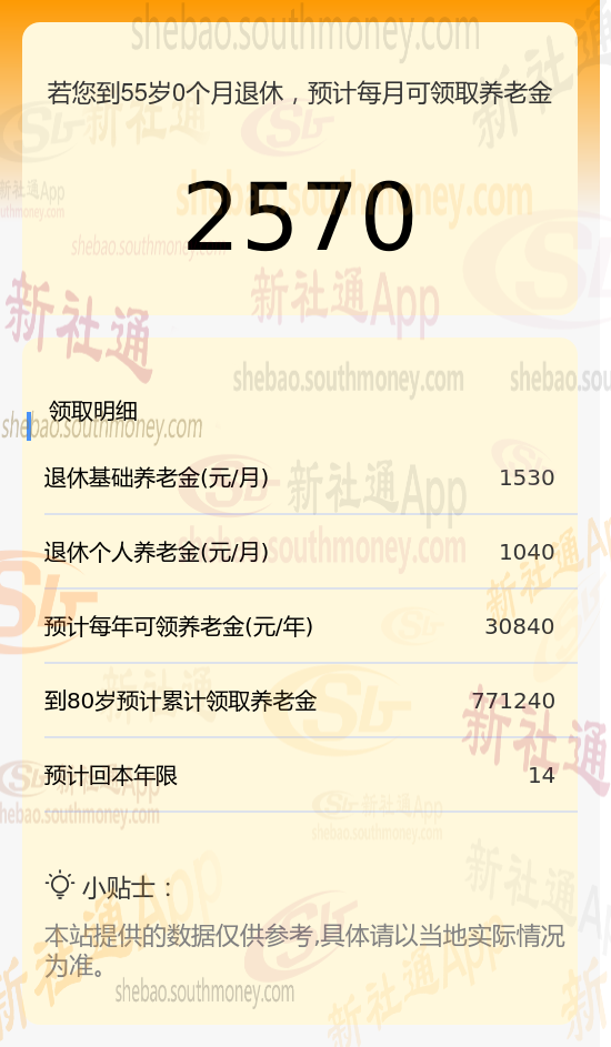 新社通app养老金计算器算出养老工资一个月多少钱?