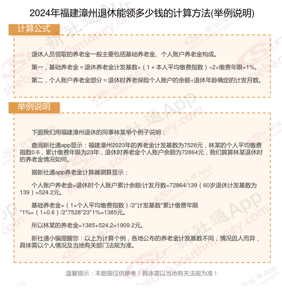 福建漳州退休工资养老金计算方法及公式2024年最新(举例说明)