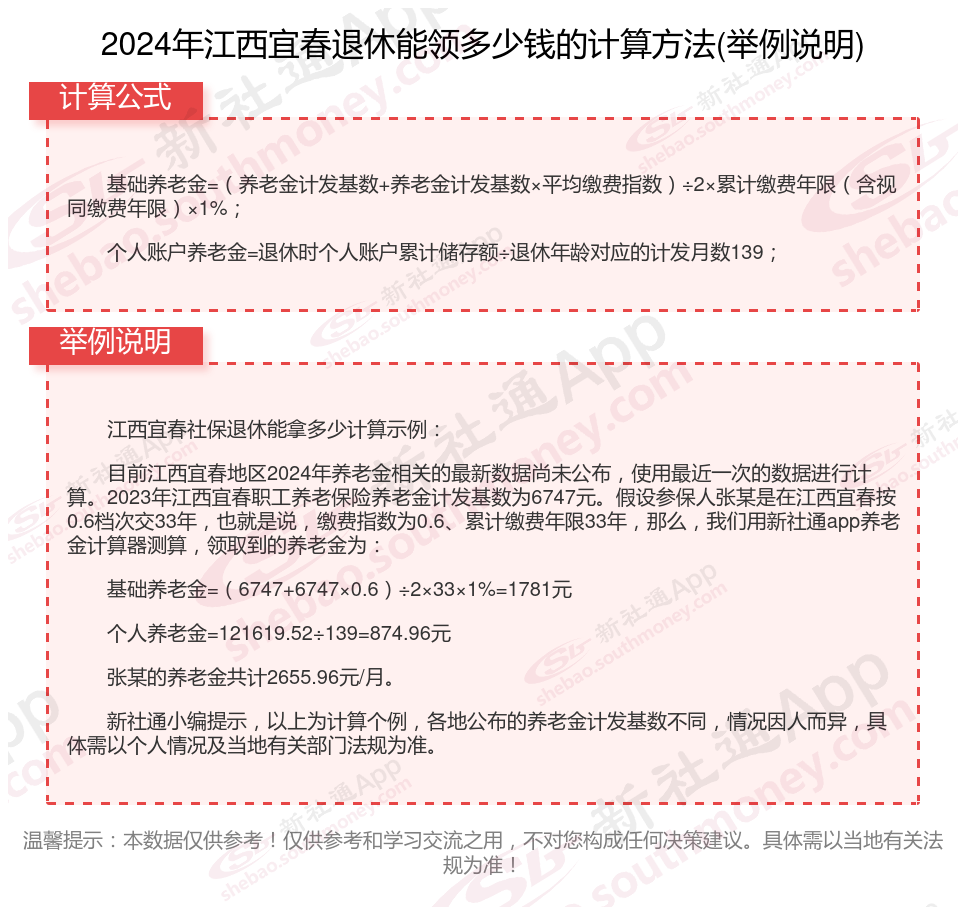 江西宜春退休工资养老金计算方法及公式2024年最新(举例说明)