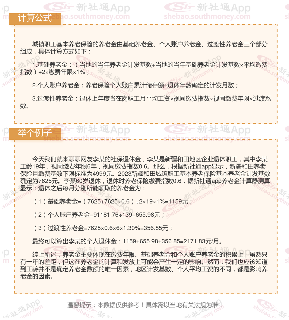 新疆和田退休工资养老金计算方法及公式2024年最新(举例说明)