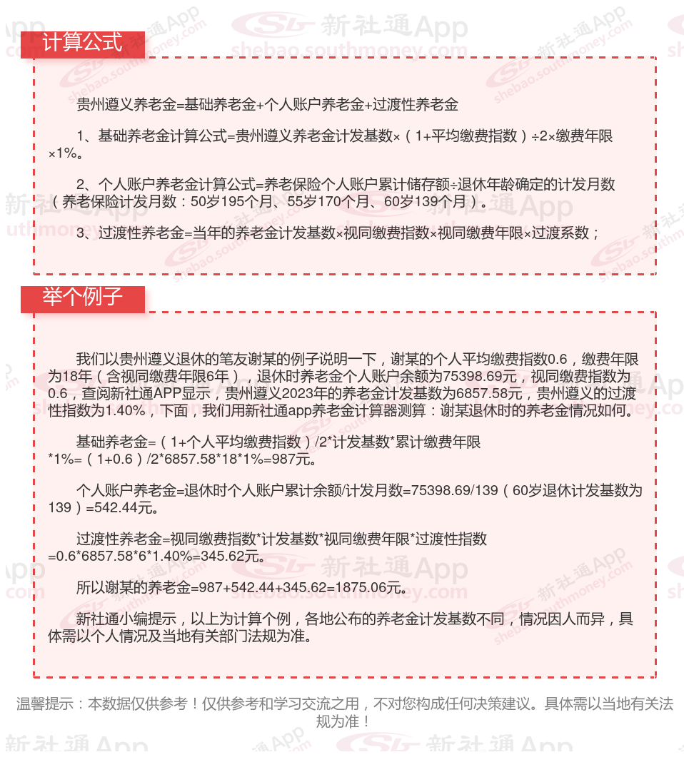 贵州遵义退休工资养老金计算方法及公式2024年最新(举例说明)