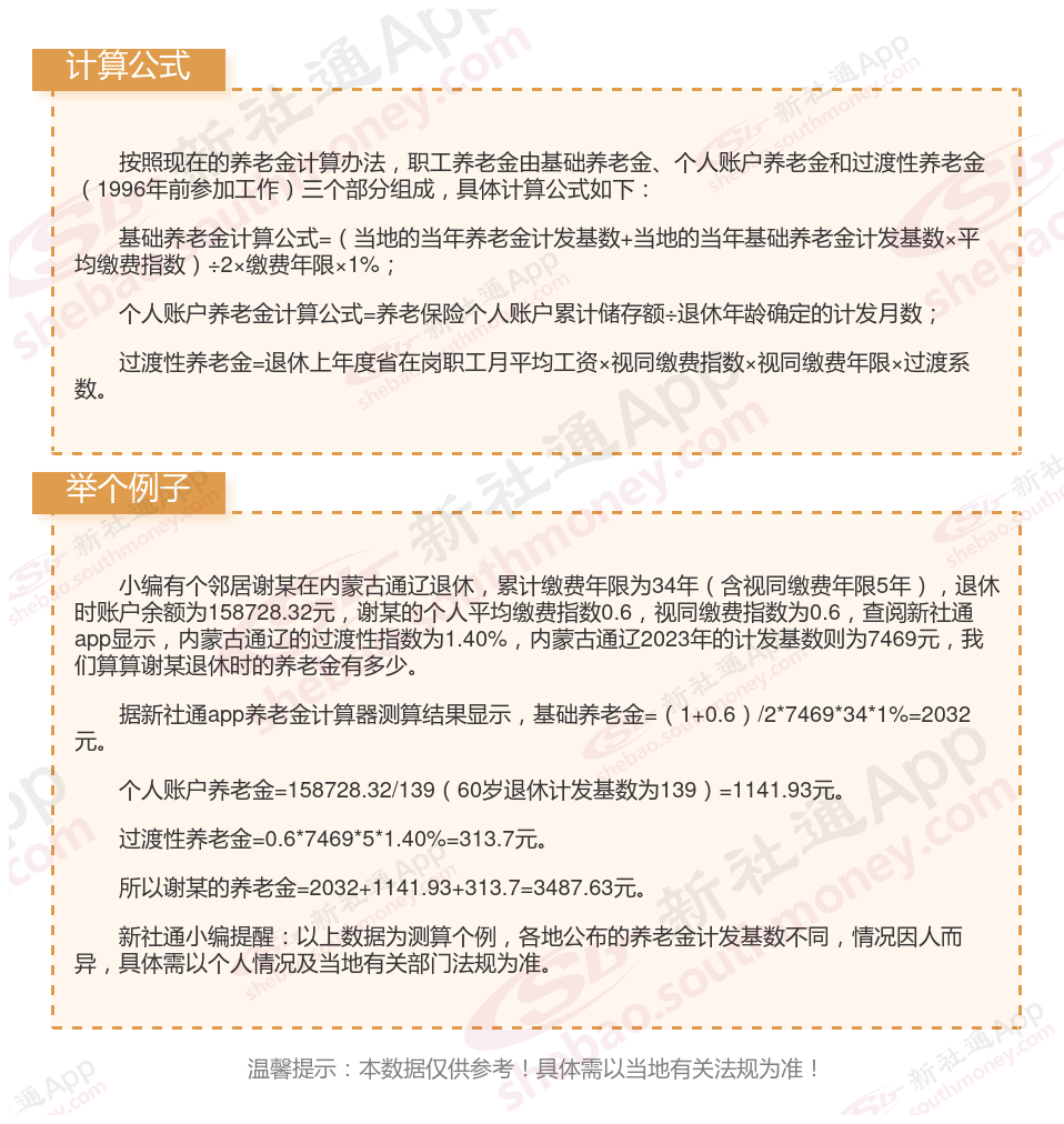 内蒙古通辽退休工资养老金计算方法及公式2024年最新(举例说明)
