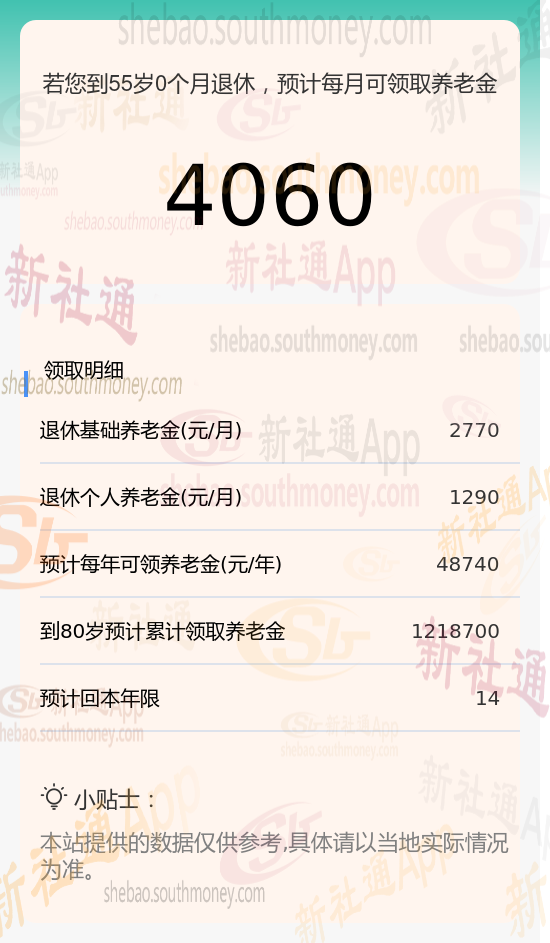 新社通app养老金计算器计算所得:
