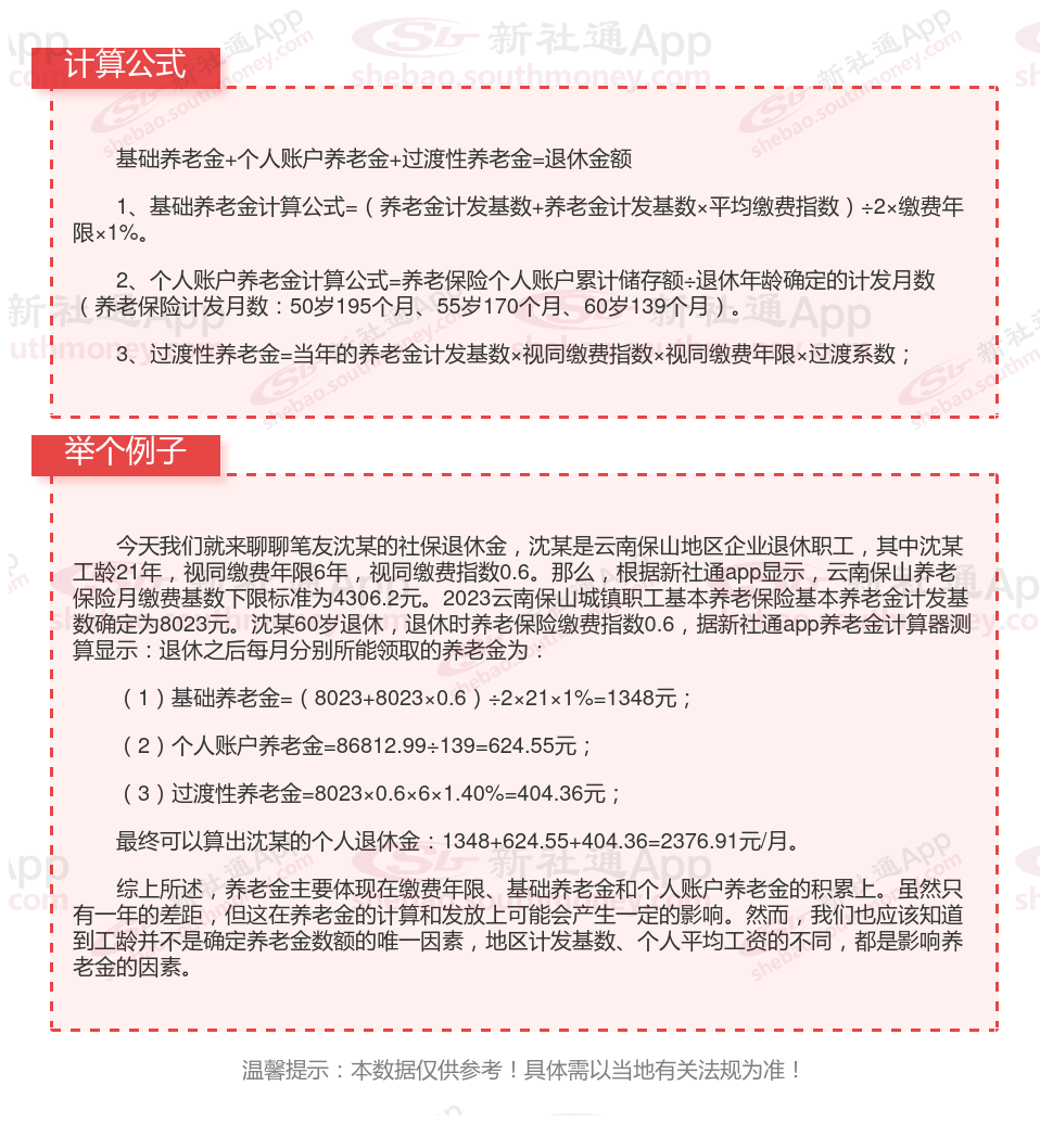 云南保山退休工资养老金计算方法及公式2024年最新(举例说明)