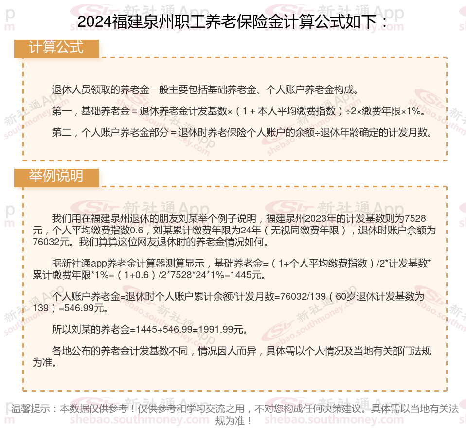 福建泉州退休工资养老金计算方法及公式2024年最新(举例说明)