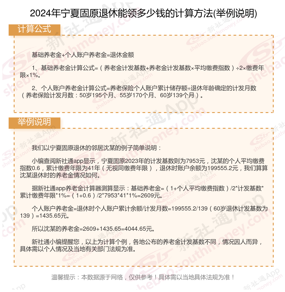 宁夏固原退休工资养老金计算方法及公式2024年最新(举例说明)