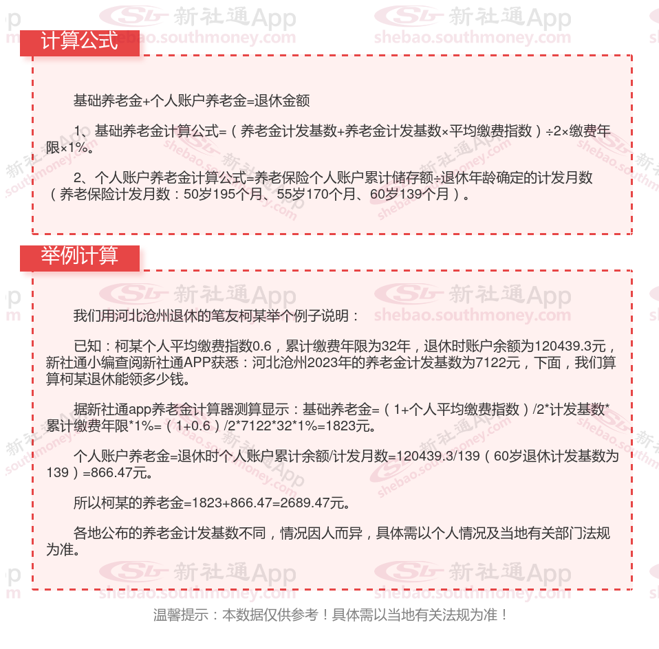 河北沧州退休工资养老金计算方法及公式2024年最新(举例说明)