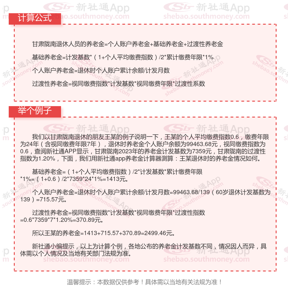 甘肃陇南退休工资养老金计算方法及公式2024年最新(举例说明)