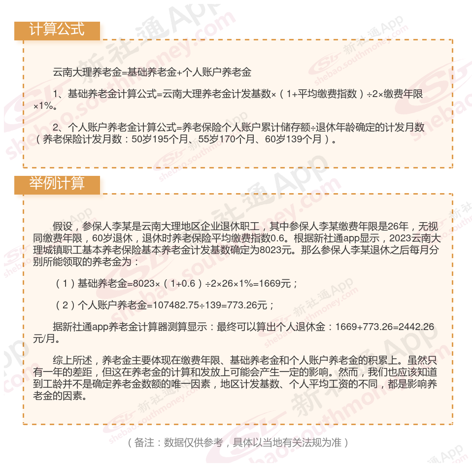 云南大理退休工资养老金计算方法及公式2024年最新(举例说明)