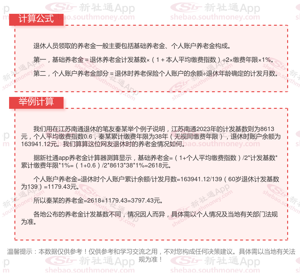 江苏南通退休工资养老金计算方法及公式2024年最新(举例说明)