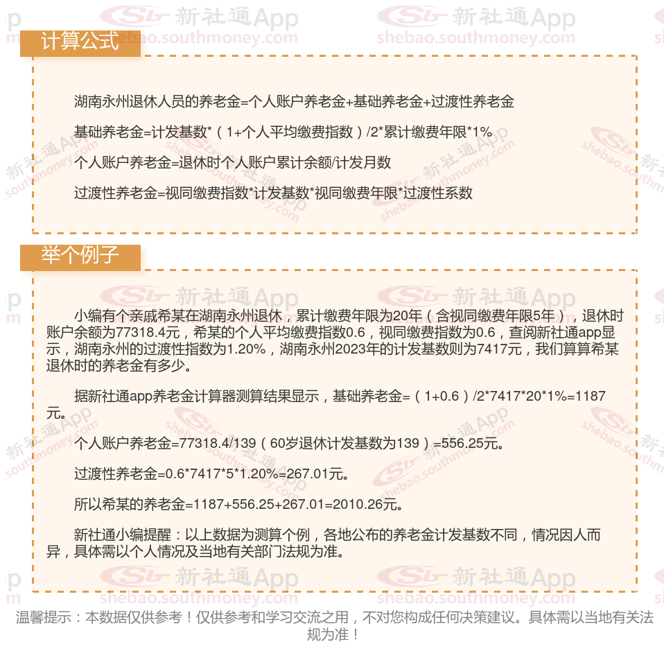 湖南永州退休工资养老金计算方法及公式2024年最新(举例说明)