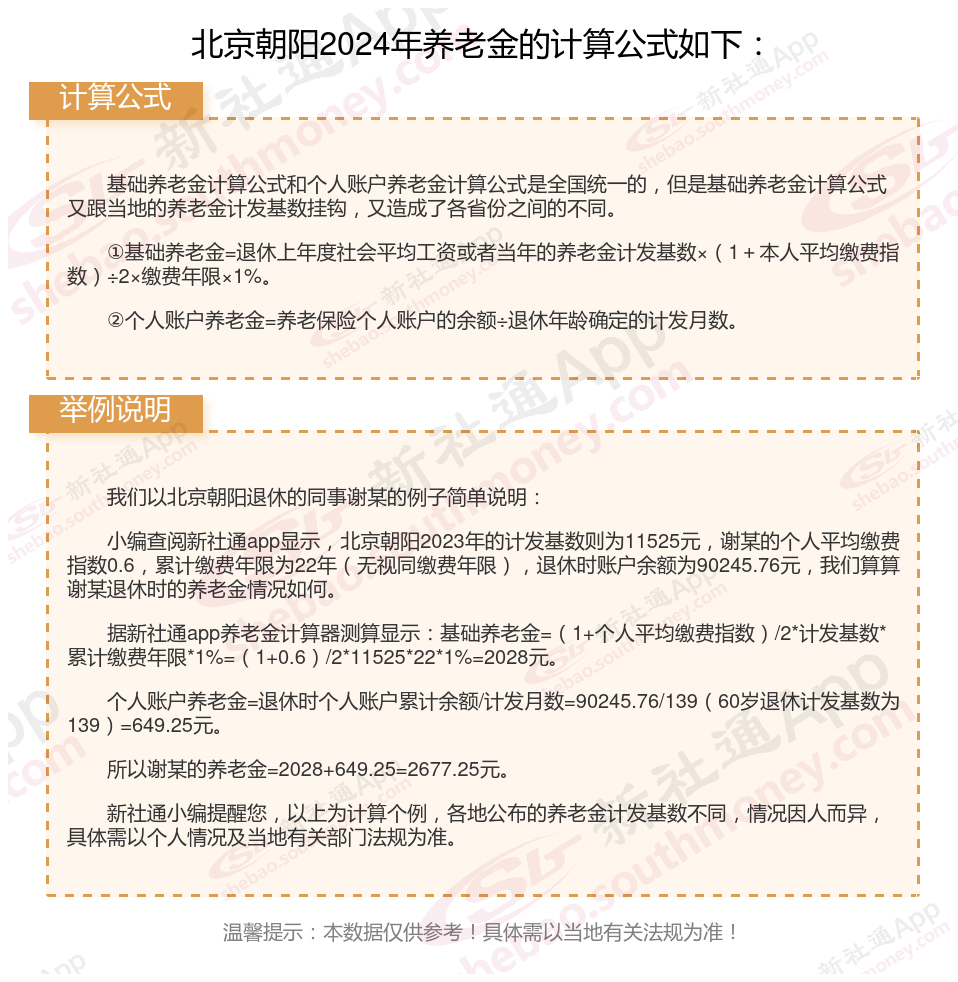 北京朝阳退休工资养老金计算方法及公式2024年最新(举例说明)