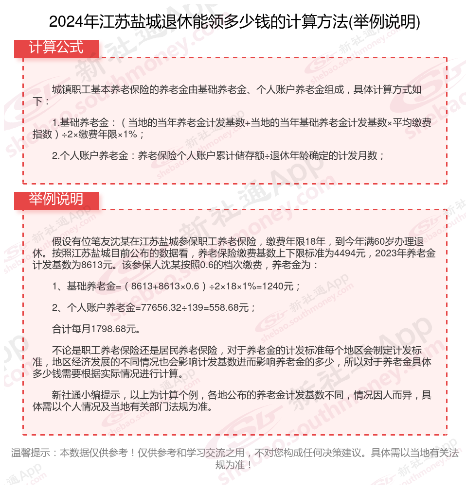 江苏盐城退休工资养老金计算方法及公式2024年最新(举例说明)