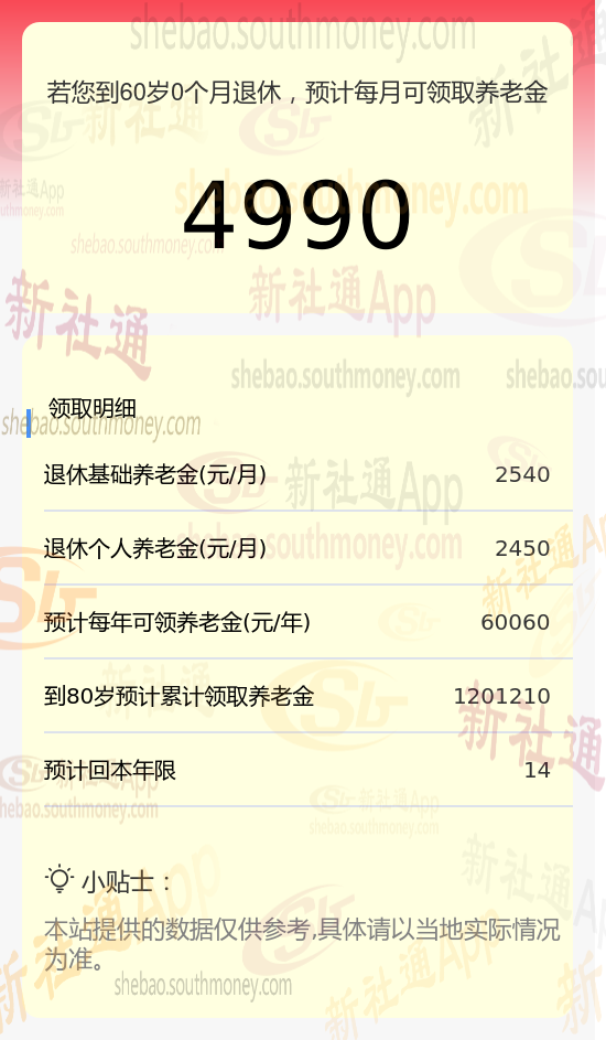新社通app养老金计算器算出养老金多少钱?