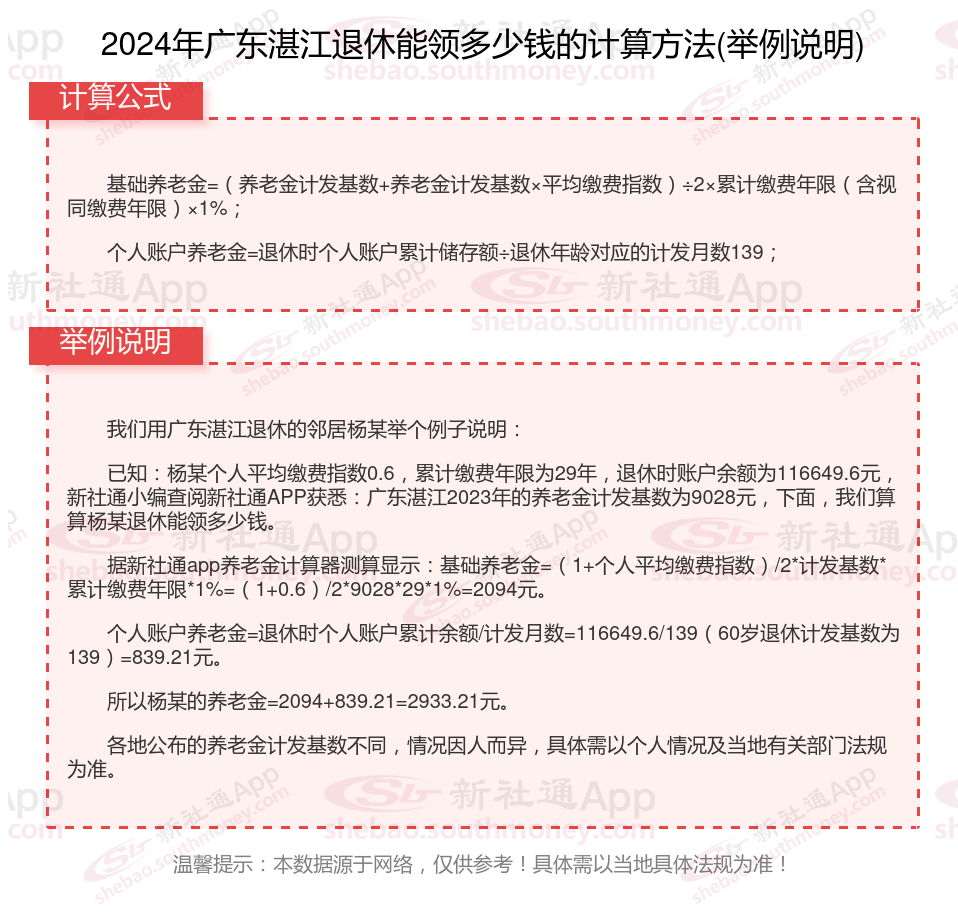 广东湛江退休工资养老金计算方法及公式2024年最新(举例说明)