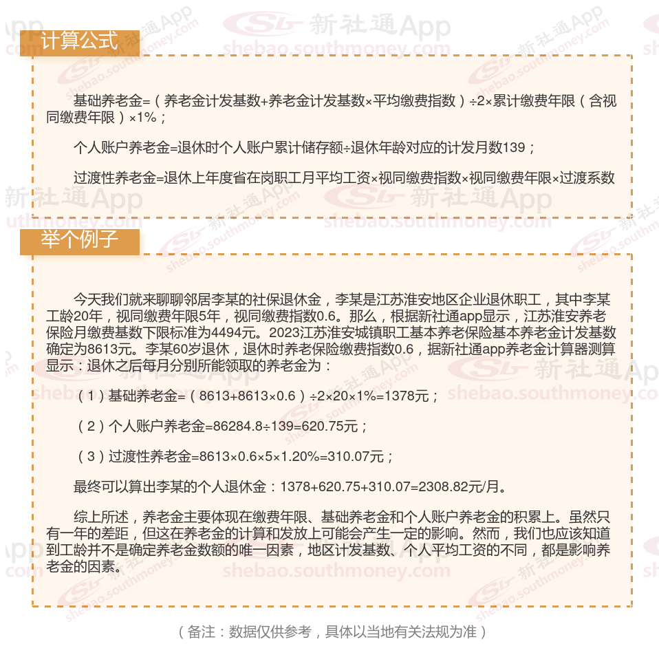 江苏淮安退休工资养老金计算方法及公式2024年最新(举例说明)