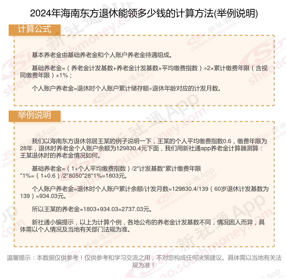 海南东方退休工资养老金计算方法及公式2024年最新(举例说明)