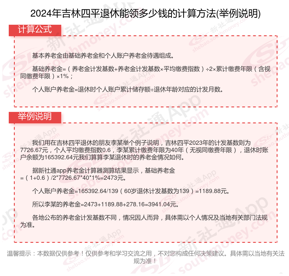 吉林四平退休工资养老金计算方法及公式2024年最新(举例说明)