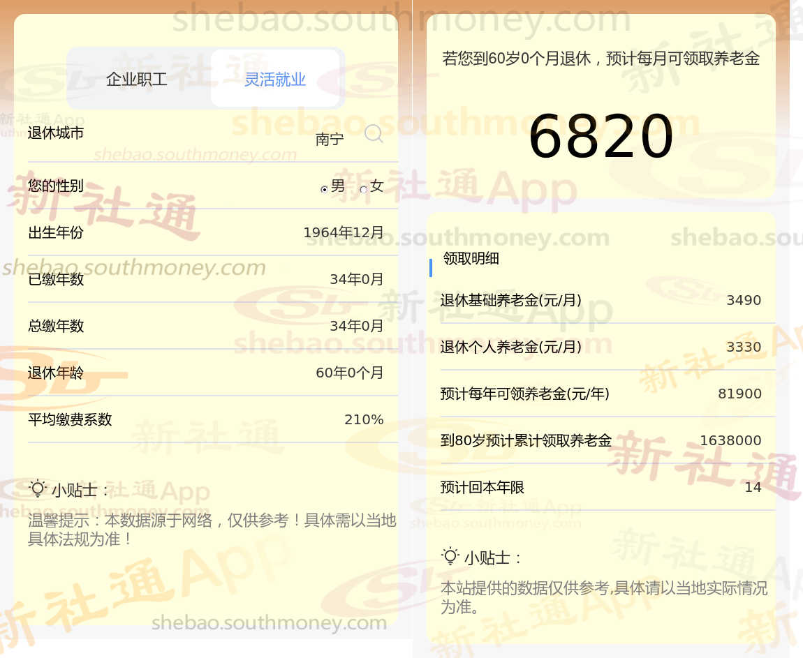 新社通app养老金计算器测算得出养老金可领取: