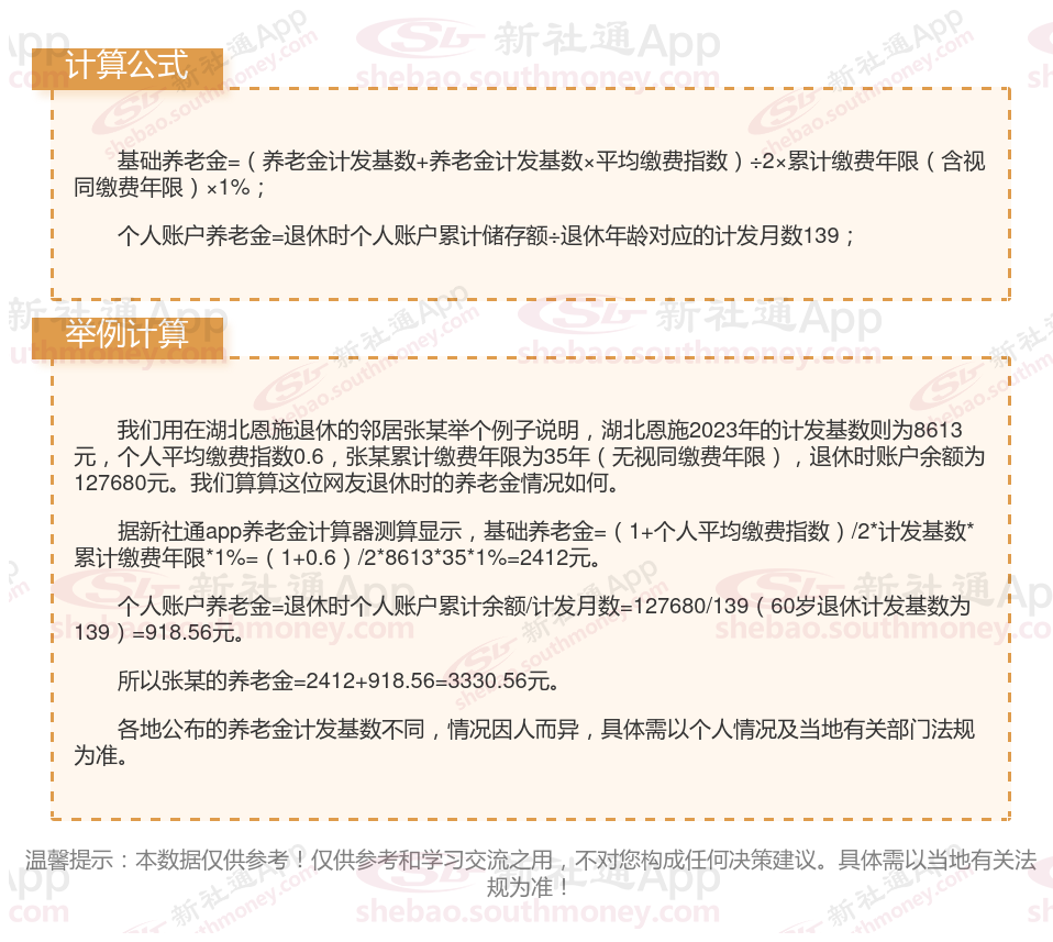 湖北恩施退休工资养老金计算方法及公式2024年最新(举例说明)